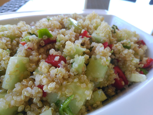 - Escurrimos la quinoa, la enfriamos, y la añadimos al bol, añadiendo un chorro de aceite.