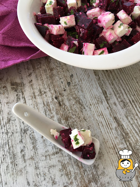 La remolacha está ahora de temporada. No es un ingrediente que haya sido muy popular en la cocina casera, menos aun en la de mi madre, pero cada vez está más presente en platos como arroces y patés en muchos restaurantes. Aprovechando que mi suegra me ha regalado unas remolachas de su huerta, nos hemos decidido a preparar esta ensalada con queso feta que tiene un contraste de sabor muy bueno. Además, el resultado es un plato bastante contudente, ideal para coger fuerzas en esta cuesta de septiembre.