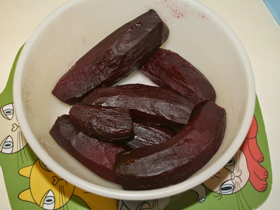 Remolacha (fue un poco a ojo, pero unos 400 gramos después de cocinar)