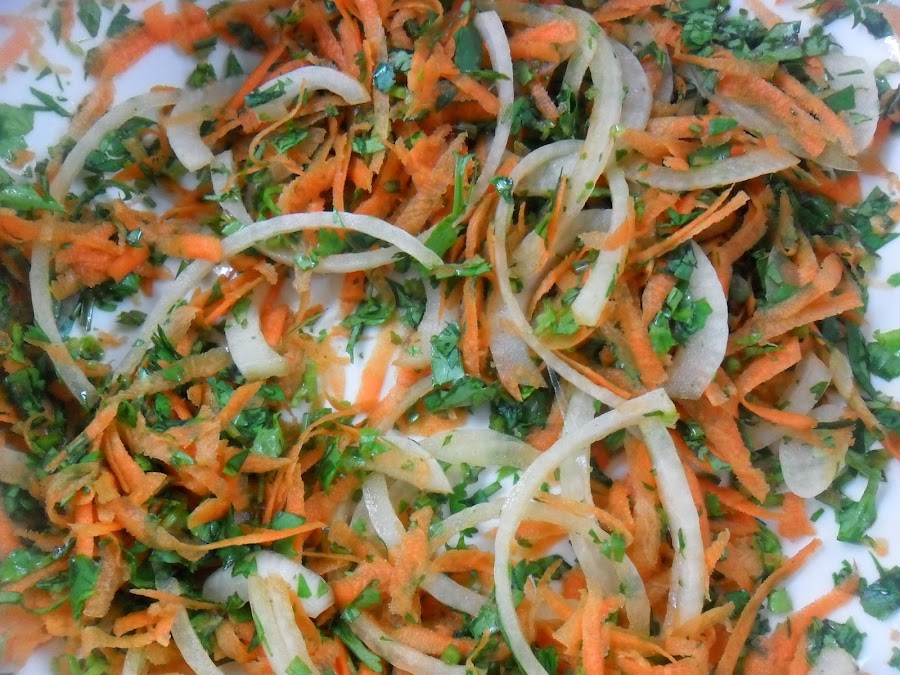 § Integre la cebolla, la zanahoria y el cilantro y, por último, integre el repollo.