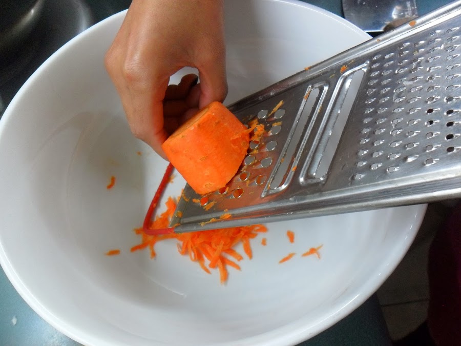 § Pele la zanahoria y rállela por el lado más grande del rayo