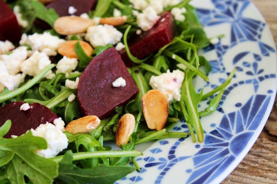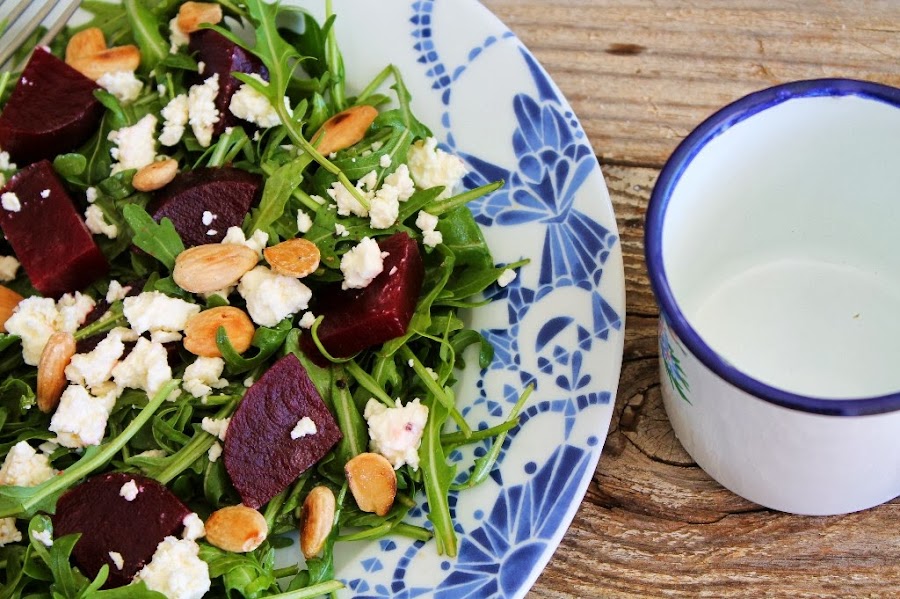 La de hoy es una receta súper súper fácil que reúne el frescor de las hojas de ensalada, un punto dulce de la remolacha, un toque salado del queso feta, el ácido de la lima y el crujiente de las almendras tostadas, una combinación única y muy completa. Para esta receta me he inspirado en una del libro que me he comprado últimamente de una cocinera de Nueva Zelanda que me encanta y que os recomiendo por su cocina fresca y sana que es ANNABEL LANGBEIN, también podéis ver su programa en Canal Cocina.