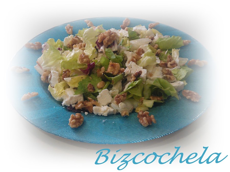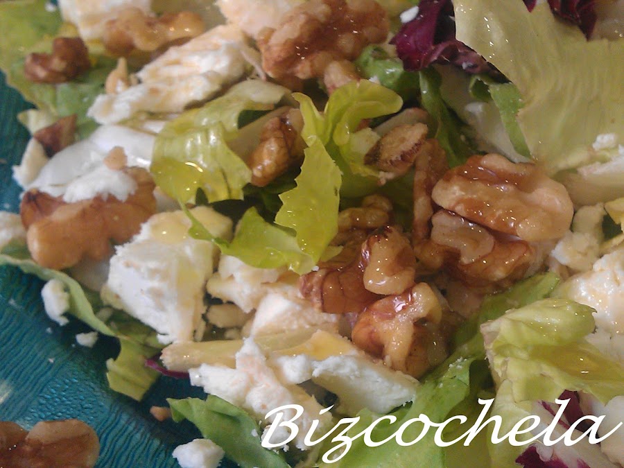 Pues continuamos con las verduritas......en esta ocasión una ensalada. Si bien es cierto que con el queso, la miel y las nueces, no es demasiado ligera, pero está riquísima.