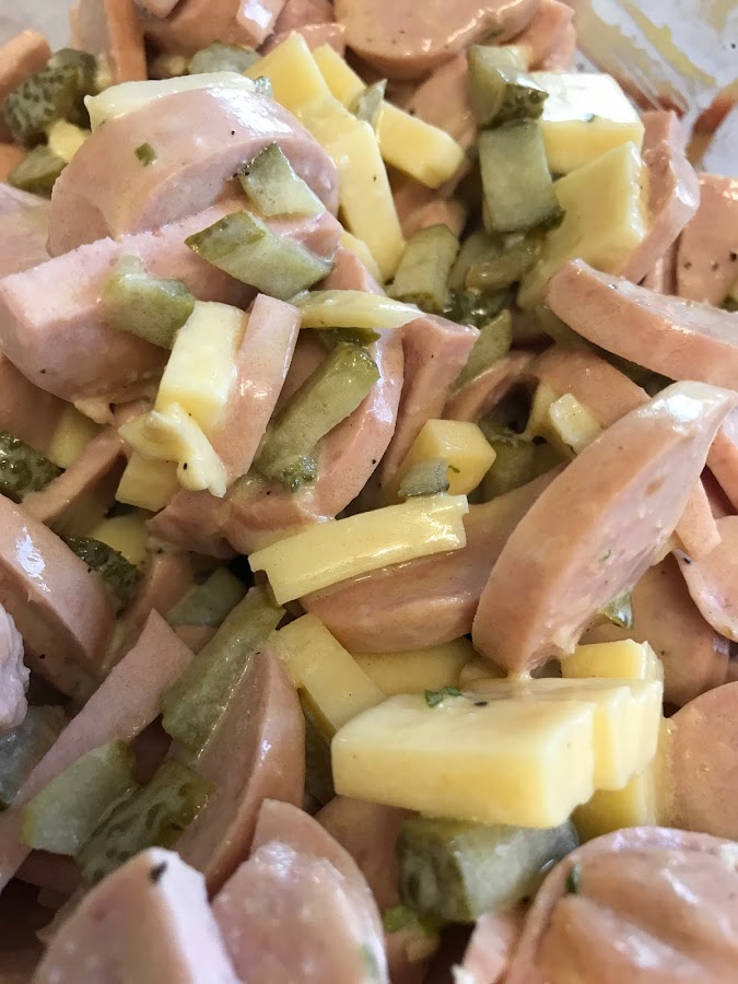 Os dejo no obstante otra idea http://www.chefkoch.de/rezepte/883881193990052/Schweizer-Wurstsalat.html