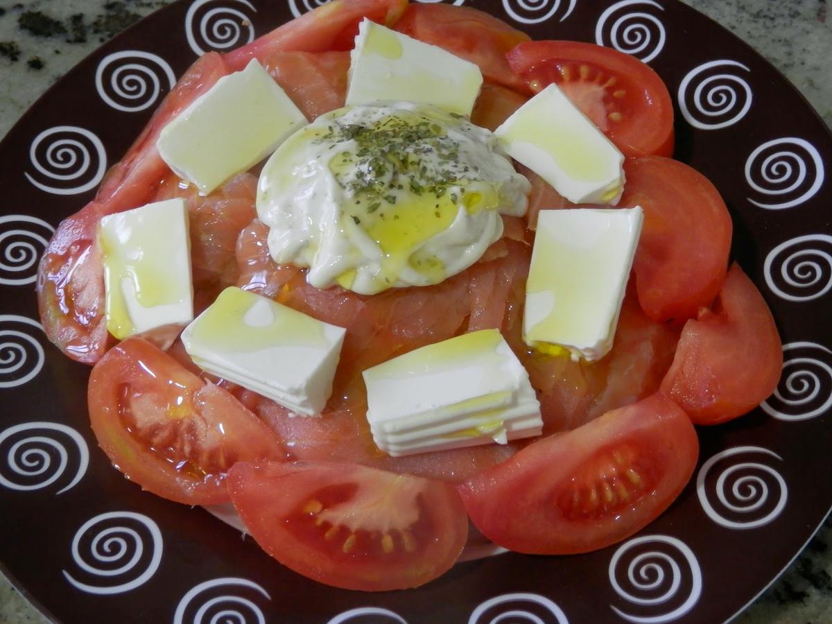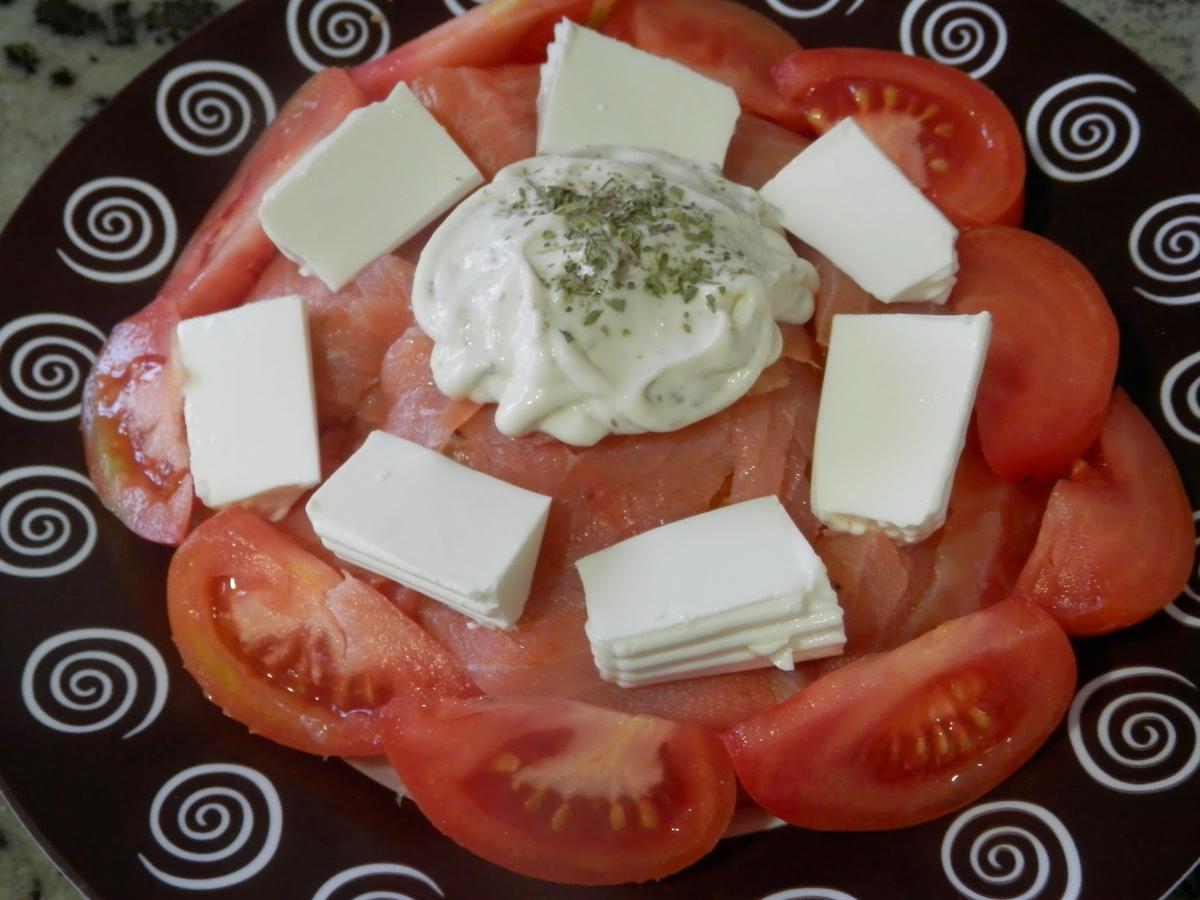 Encima de la salsa tártara, espolvorearemos un poco de orégano y un chorrito de aceite de oliva.