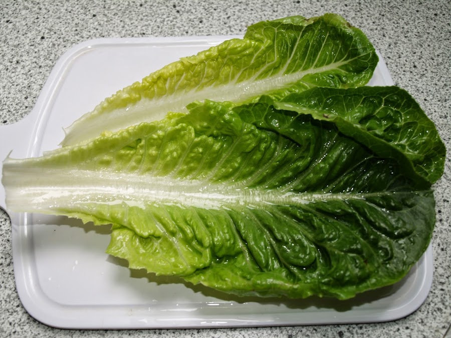 - A continuación lavamos muy bien la lechuga, la escurrimos y cortamos en trozos, y los ponemos sobre un plato.