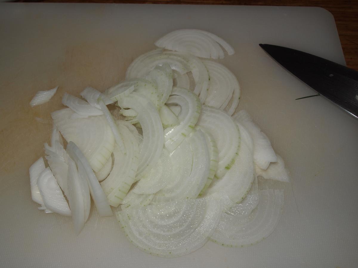 Cortamos la cebolla en juliana muy finita y la ponemos en remojo con el vinagre, yo he usado vinagre de sidra, pero se puede hacer con cualquier otro tipo de vinagre. Y como os digo, yo suelo hacer varias cebollas de vez, las meto en un bote de cristal con tapa y cubro con vinagre todas las cebollas, luego las dejo en la nevera y las voy consumiendo según necesidad.