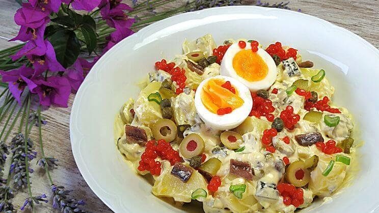 Ensalada de patata con salsa tártara y perlas de tomate Una ensalada sencilla, fácil de ... leer más
