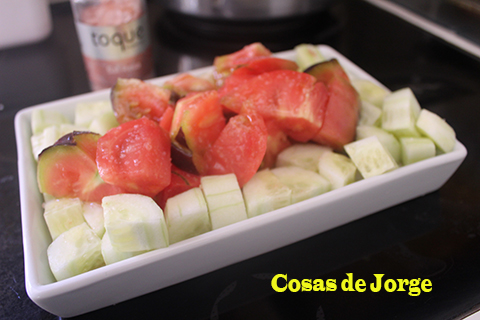 Como la cuestión era conocer sabor del tomate prepare con uno de ellos la ensalada simple que os presento.