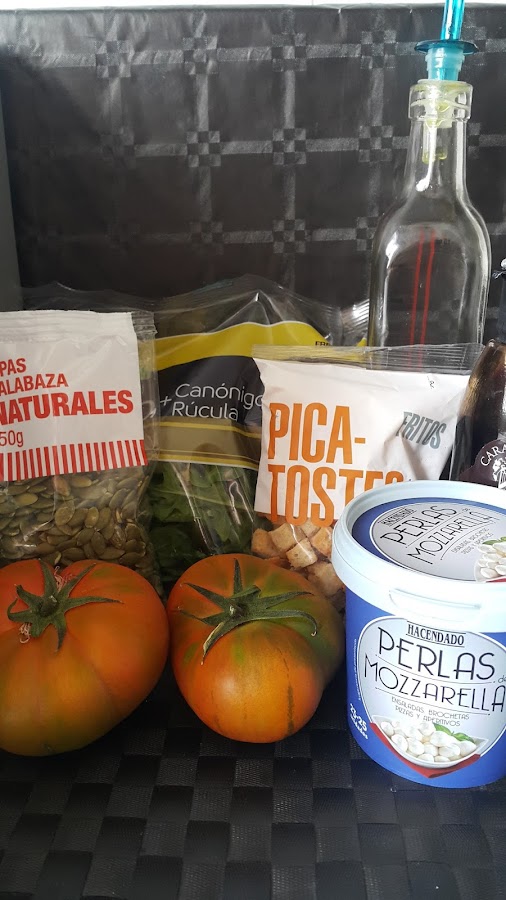 Hoy os traigo una ensalada de tomate con aire de caprese pero con toques distintos. Empecemos como siempre con los ingredientes: