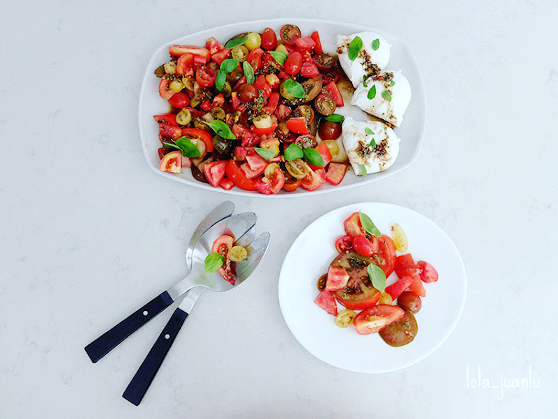 Desde que descubrí esta ensalada, se convirtió en una habitual en mi mesa, sobre todo en la época veraniega. Nos vamos a basar en la receta "La ensalada de tomate mothership" que puedes encontrar en el libro "En casa de Jamie" de Jamie Oliver.