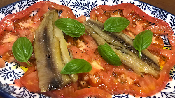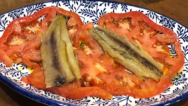 Coloca sobre las rodajas de tomate unos lomos de sardina de barrica limpias.