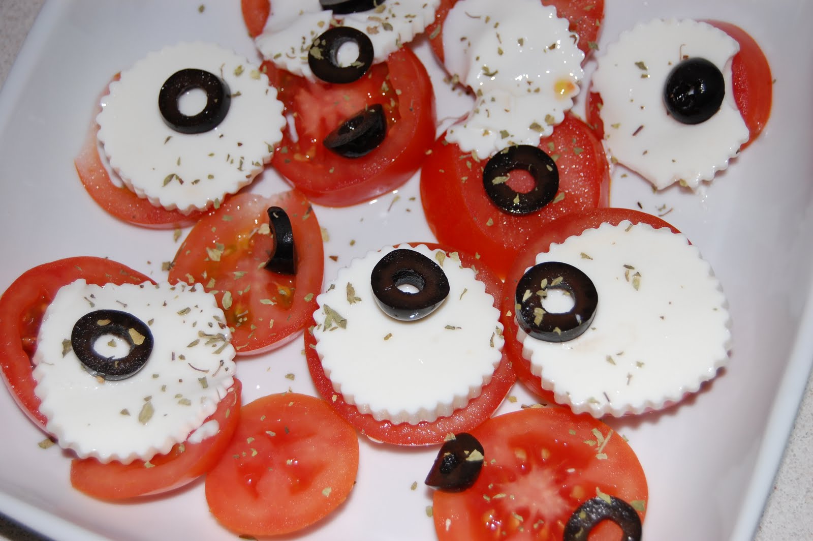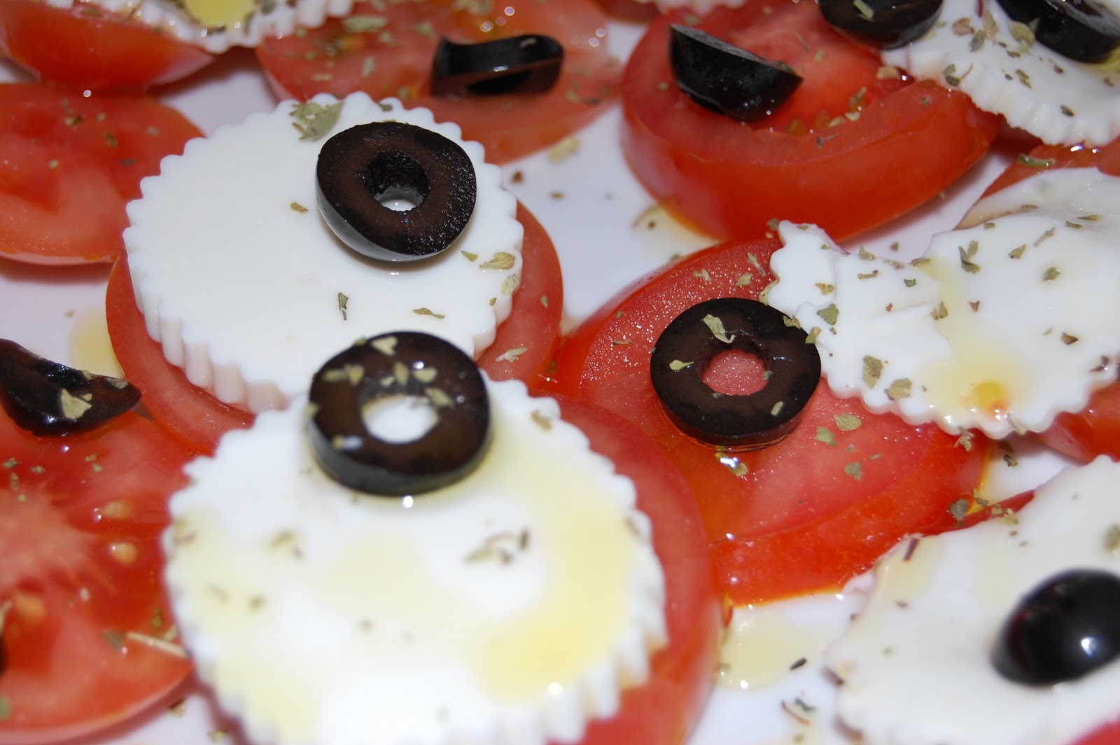 troceamos las aceitunas,salamos y lo regamos todo con un hilito de aceite de oliva virgen extra,espolvoreamos con oregano y lista.