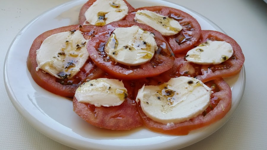 En un plato o fuente, vamos alternando tomate y mozzarella.