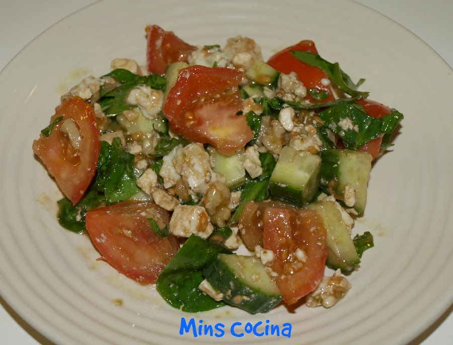 El otro día se me vino encima la hora de la cena (para variar) y no tenía ni ideas, ni demasiadas cosas en la nevera. Rebuscando, encontré algo de queso y acabé preparando una ensalada sencillísima pero no por eso menos deliciosa. Estaba divina! Me encanta añadir queso y frutos secos a las ensaladas, son perfectos para hacer un plato único completo y quedan de maravilla. Esta vez no fue una excepción. Fantástica!