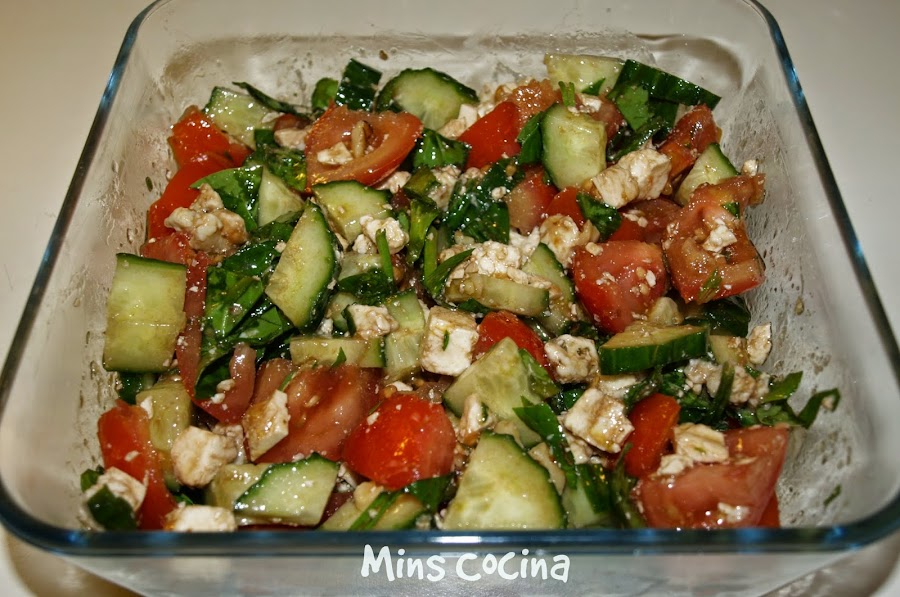 - Añadimos queso feta o del estilo, al gusto, en cubitos o desmigado.