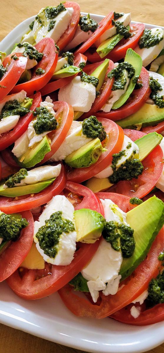 Cómo hacer la más deliciosa ensalada de tomates, aguacate y queso mozzarella con un toque de pesto