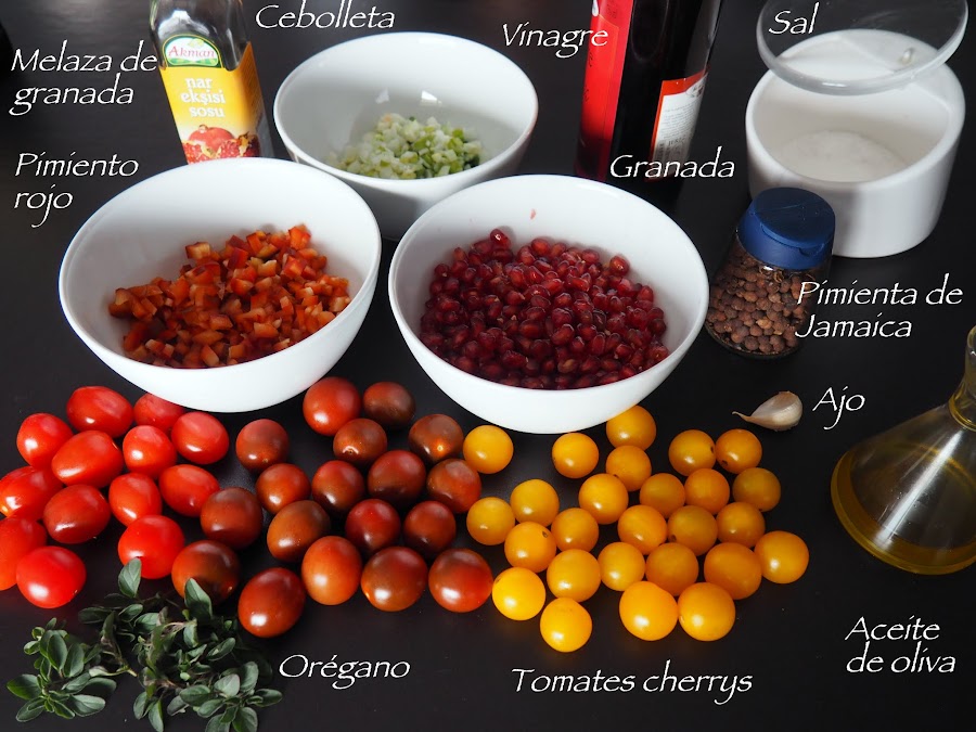 Pueden utilizarse la mezcla de tomates que se desee, pero obtendremos mejor resultado si algunos son dulces y en general en su punto de madurez. Los cherrys, de diferentes colores y variedades, suelen dar muy buenos resultados en estos platos.