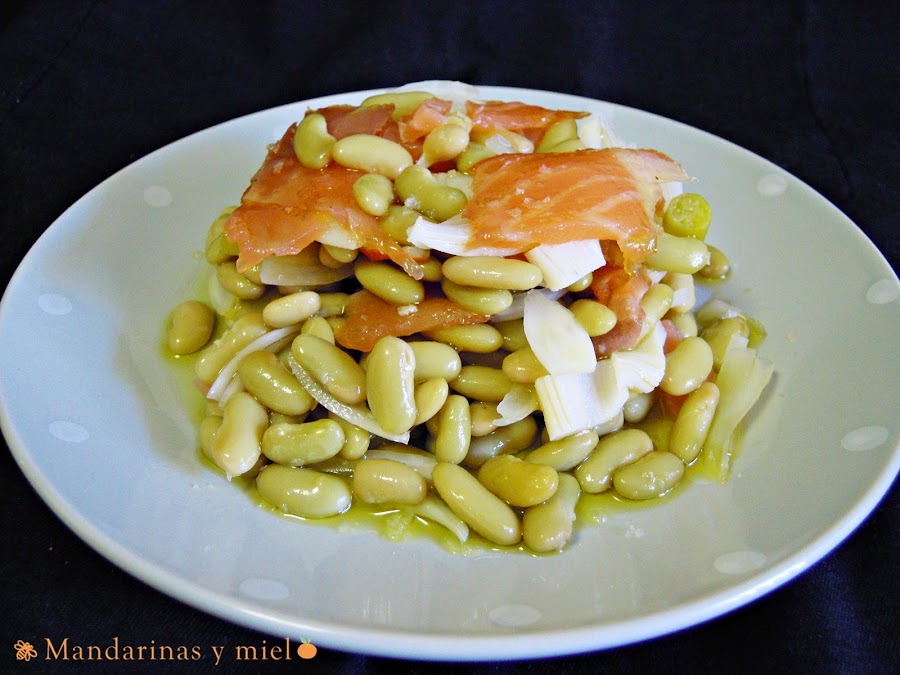Enseguida he pensado en hacer con ellas una ensalada fresca y sencilla, sin complicarme la vida, pero, ¿que le pongo? He vuelto a la nevera a ver que tenía para poder añadir a la ensalada.....y con lo que tenía la he hecho, y ha sido todo un éxito....está riquísima!!!