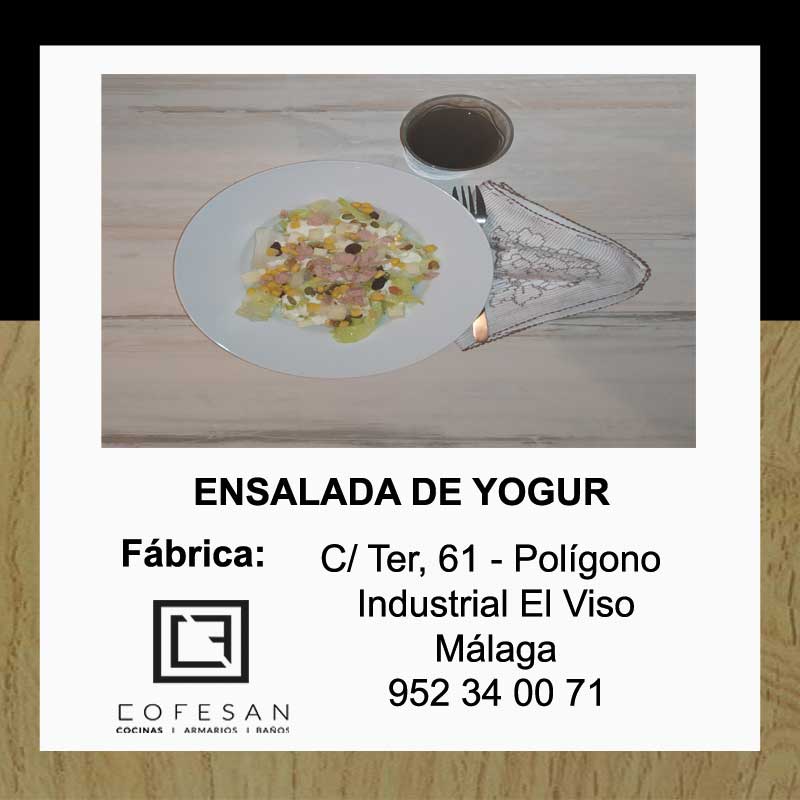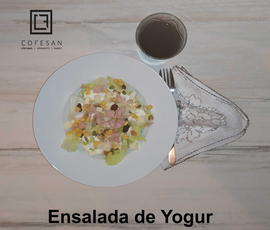 3. En una fuente colocamos todos los ingredientes de la ensalada y le ponemos por encima la salsa de yogur.