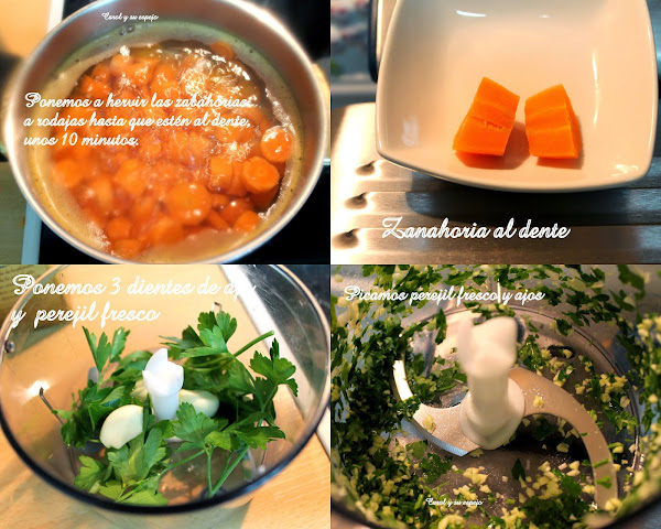 . Cortamos las zanahorias a rodajas no muy finas y ponemos a hervir durante 10 minutos. Hay que dejar la zanahoria al dente!!!!Es muy importante, me gusta mucho que cruja la zanahoria por el centro.