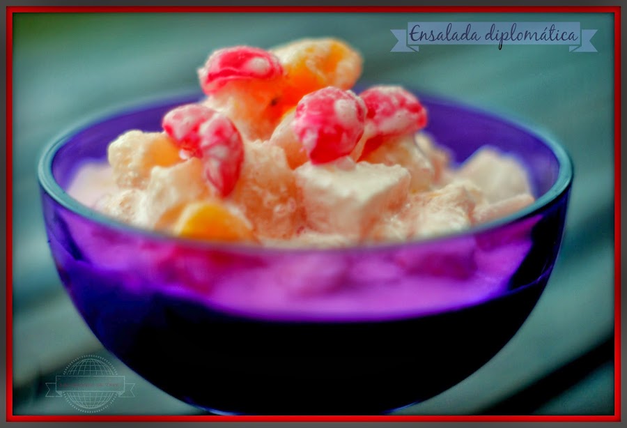 Hola a todos... Aquí os presento una deliciosa ensalda preparada con macedonia, nata (crema de leche) y crema agria, es perfecta para acompañar asados de cerdo o pavo, ya que su sabor dulzón combina de maravilla con estos sabores, además resulta muy agradable a la vista y es muy sencilla de preparar.