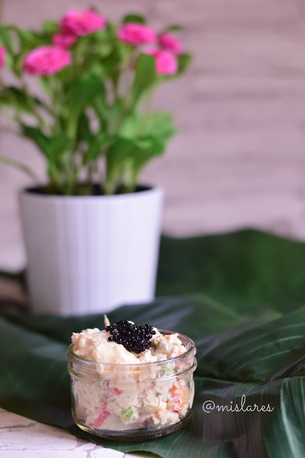 Un consejo que os doy para preparar este tipo de ensaladas es tener las patatas cocidas en la nevera y preparar la ensalada con los ingredientes que mas os gusten o que tengas en el frigo, ahora tenemos infinidad de verduras de temporada e incluso podemos añadirle alguna fruta . Echarle imaginación ¡¡