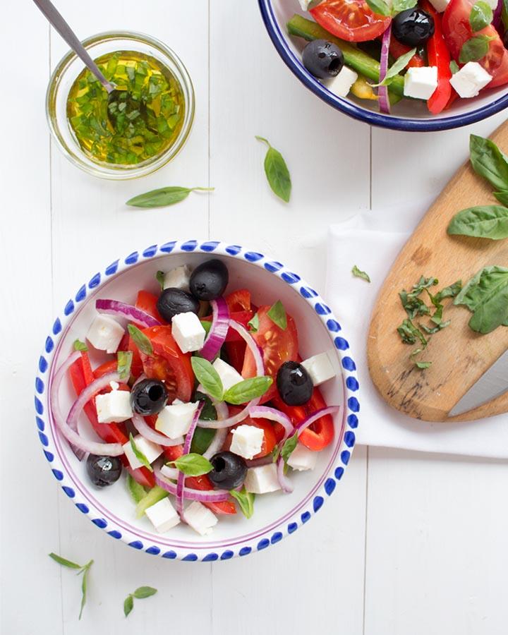 Os recomiendo acompañar esta ensalada griega con un buen trozo de Frittata de Trigueros y Rábanos. Con estos dos platos tenéis lo necesario para una cena saludable en menos de 30 minutos.