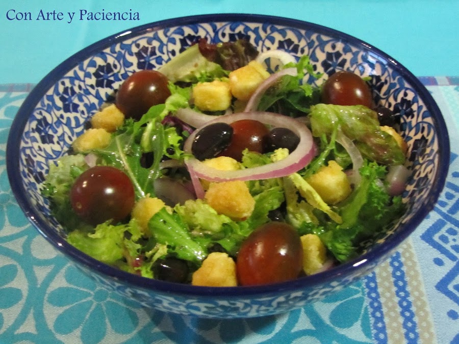 Siguiendo con la cocina internacional os traigo esta ensalada griega con queso feta tan típico de esta tierra. En este caso, frío el queso dándole un toque crujiente a nuestro paladar. Si no encontráis las clásicas aceitunas griegas podéis utilizar las aragonesas si os encontráis en España.
