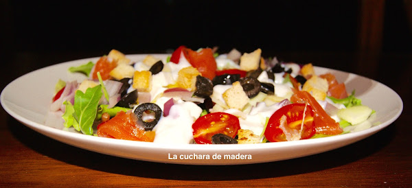 Esta ensalada la tomamos en un restaurante italiano. En casa la hemos preparado como en el restaurante y otro día sin el yogur...cual te gusta más?. Tiene tantos ingredientes que equivale a una única comida ó cena..te encantará. Esta entrada se la dedico a mis hijos.
