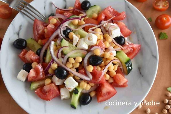 Y ya tenemos lista esta rica ensalada griega con garbanzos.
