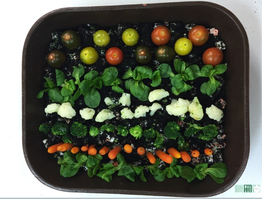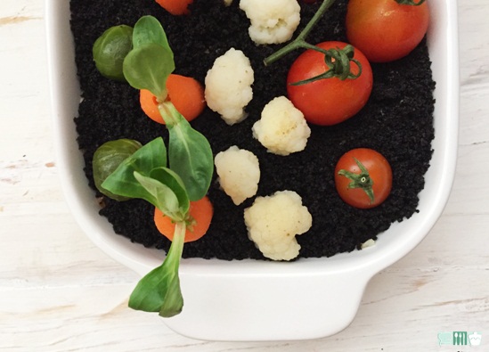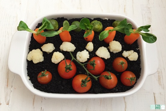 Os dejo la foto del huerto que hicimos en el taller, cambiamos coles de bruselas por brocoli, la imaginación o los gustos de cada uno es fácil de adaptar en este plato, incluso podemos poner encurtidos, zanahorias, pepinillos...