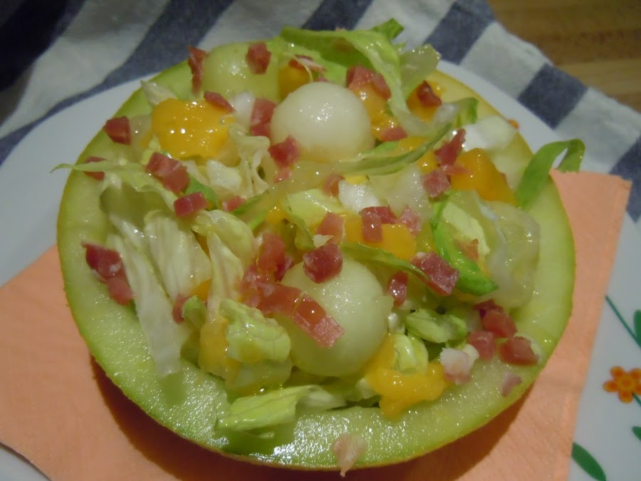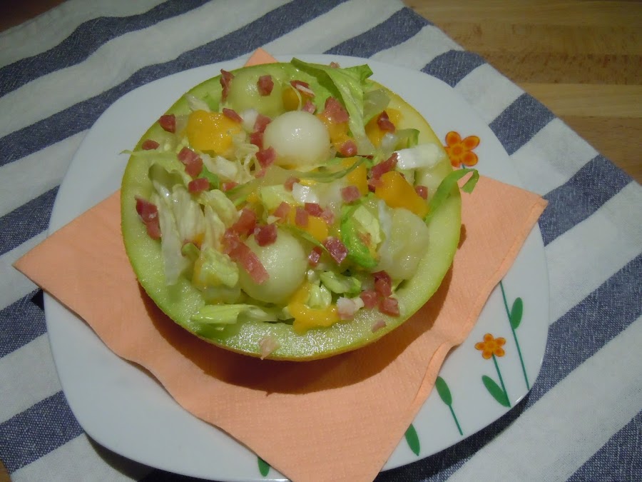 Esta ensalada a parte de que está buenísima, es refrescante y con un sabor delicioso. El melón es un producto diurético. Una sola ración de 100 gr proporciona más de la mitad de la dosis diaria recomendada de vitamina C. A parte es antioxidante, depurativo y rehidratante. Tiene un alto contenido en agua. Aporta muchos carbohidratos, como sacarosa, pero por su bajo contenido en energía resulta ideal para perder peso. Calcio, magnesio, potasio y fósforo son otras de sus virtudes para el organismo.