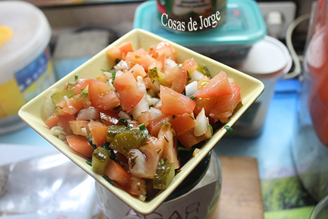 El otro día encontré una ensalada diferente, donde los ingredientes van muy picaditos y opte por adaptarla a los ingredientes que tengo en casa.