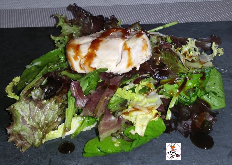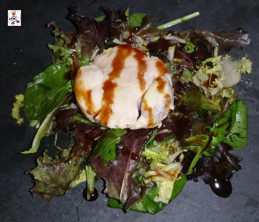 En un bol vaciamos la bolsa de ensalada, la lavamos y escurrimos bien. Cortamos en juliana el pimiento verde, rallamos el medio calabacin y lo añadimos al bol con las hojas de lechuga. Añadimos un chorrito de aceite de oliva, un poquito de sal y mezclamos. Emplatamos y ponemos encima el pollo en escabeche bien escurrido. Aliñamos con el balsámico de Pedro Ximénez y listo para comer.