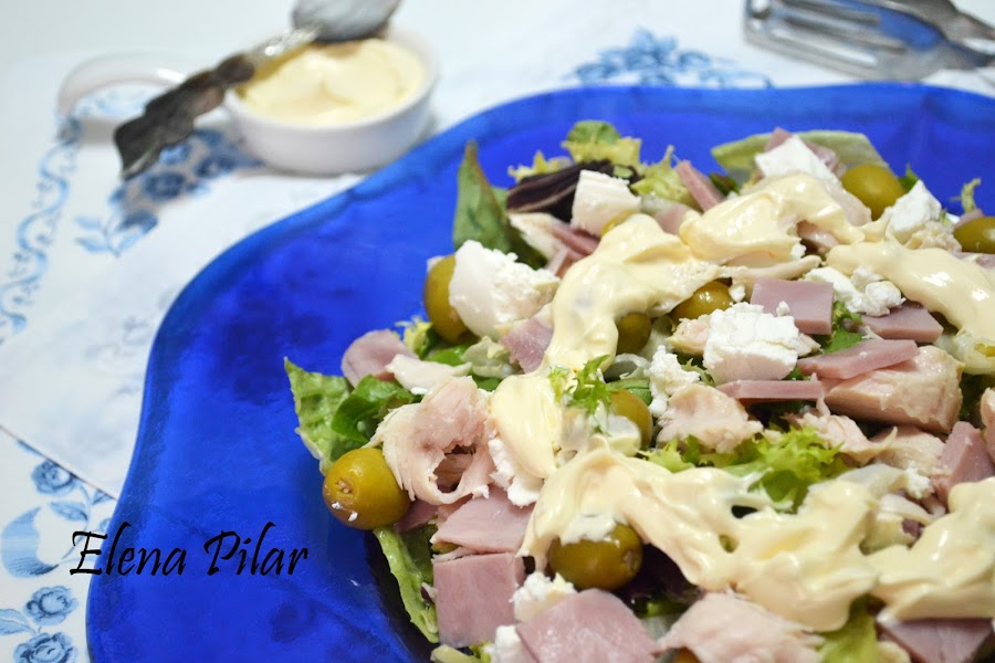 Mezclamos todos estos ingredientes con la lechuga y unas cuantas aceitunas verdes.