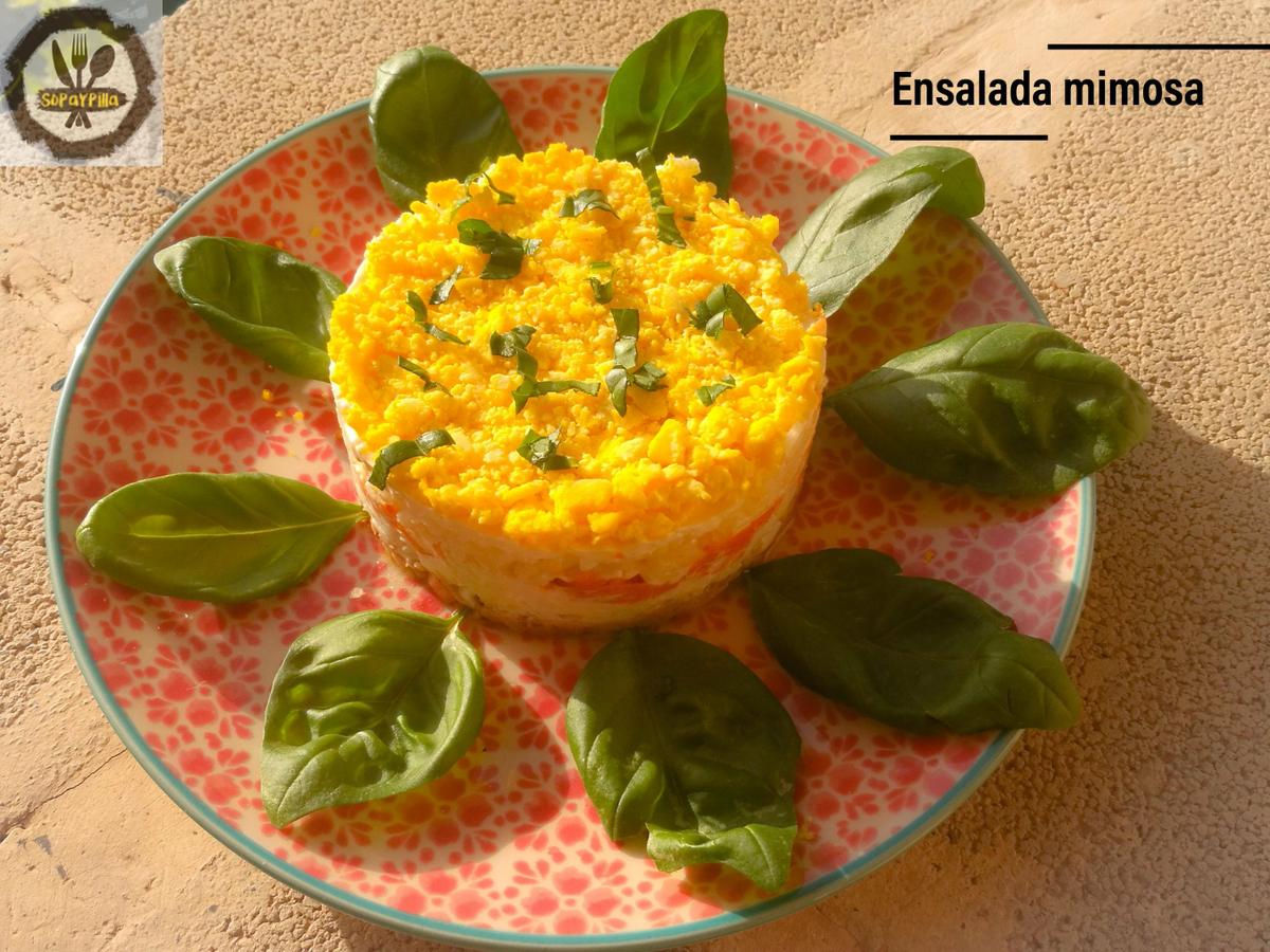 El nombre de la ensalada es por su aspecto, muy parecido a la flor «mimosa» por el acabado de las yemas.