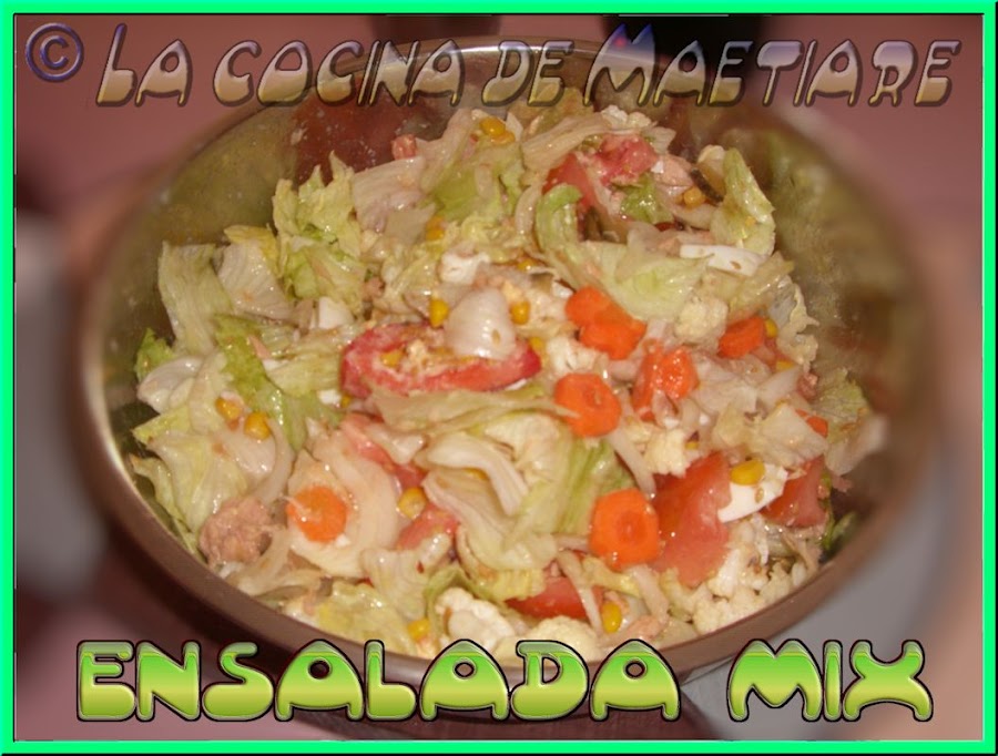 Trocear la lechuga, el tomate, la coliflor en ramilletes pequeños, la zanahoria en rodajas, la cebolleta en láminas finas. Acomodarlo en una ensaladera. Añadir el maíz y el atún troceado, Condimentar con aceite y sal y lista para disfrutarSE BUSCA TRABAJO PARA PODER VIVIR, PINCHA AQUÍ