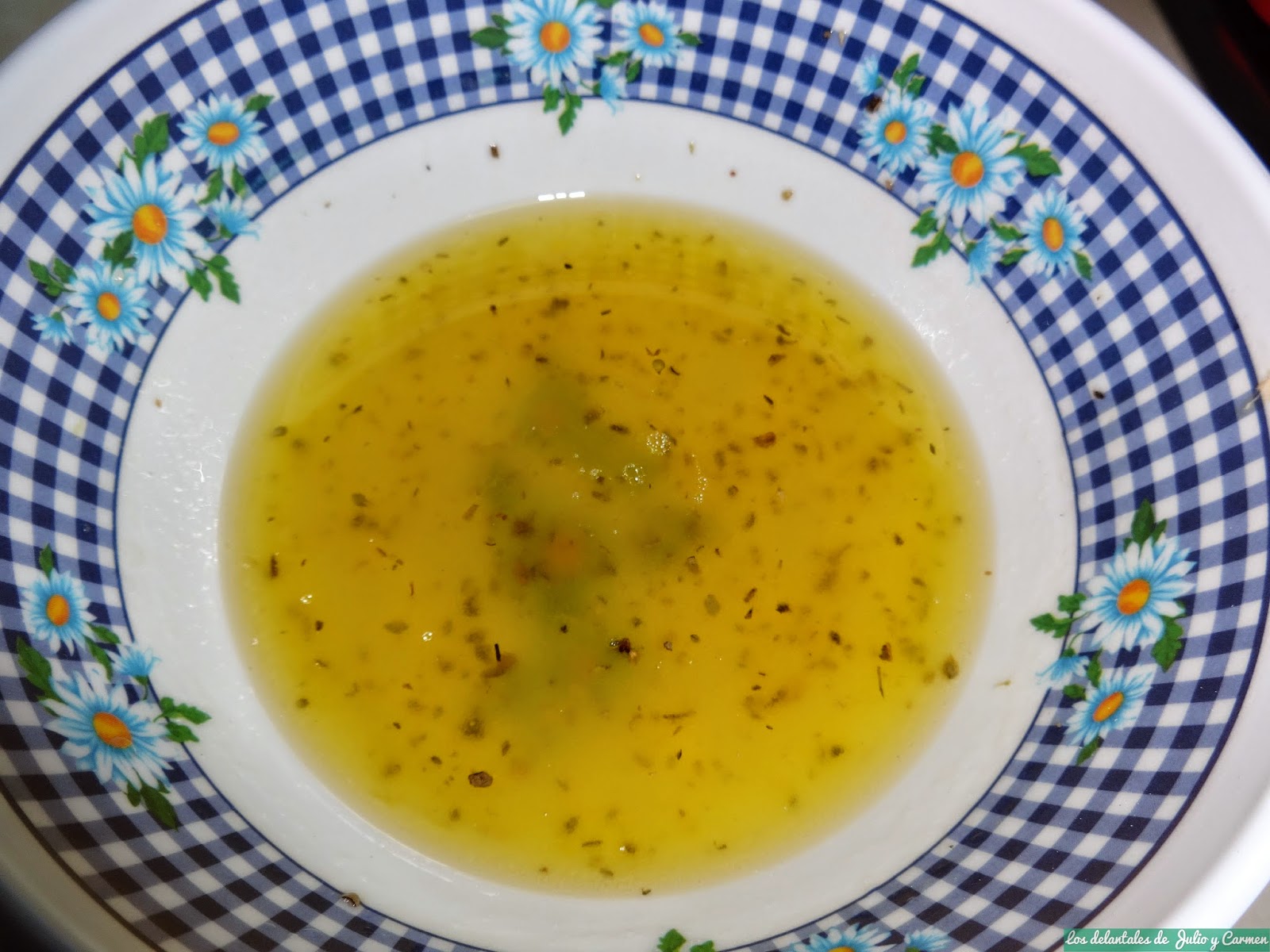 Para preparar la vinagreta, uniremos todos los ingredientes indicados en un bol, y lo echaremos encima de la ensalada justo antes de servirla.