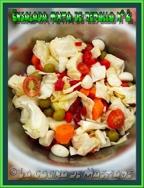 Acomodarlo todo en una ensaladera junto con las aceitunas y condimentar con el aceite y sal.