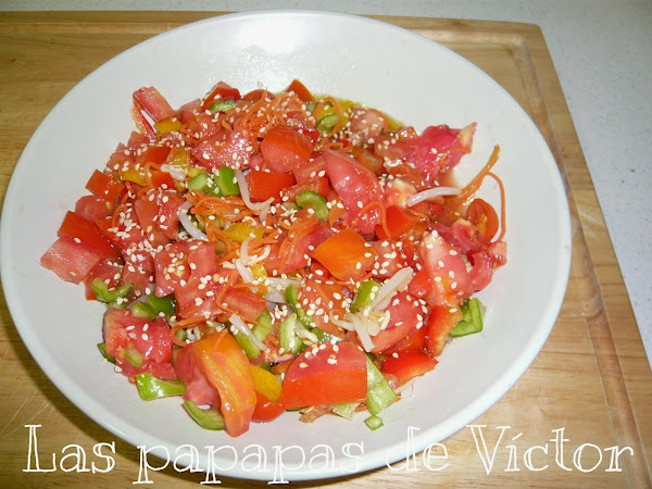 Añadir los germinados y el sésamo y aliñar al gusto
