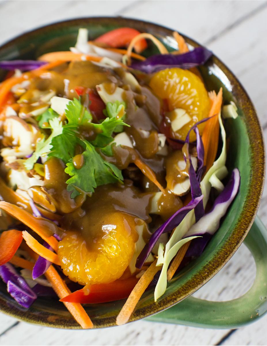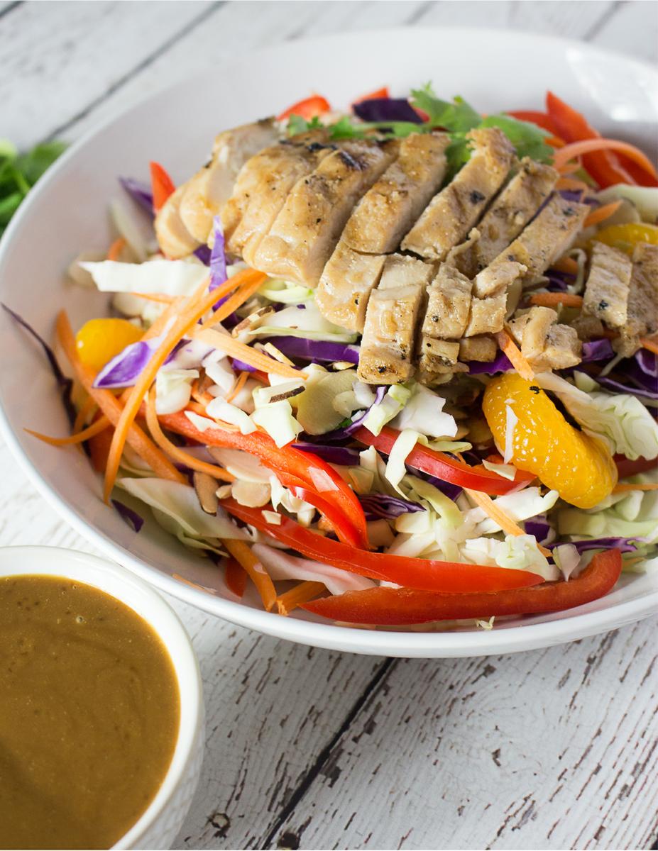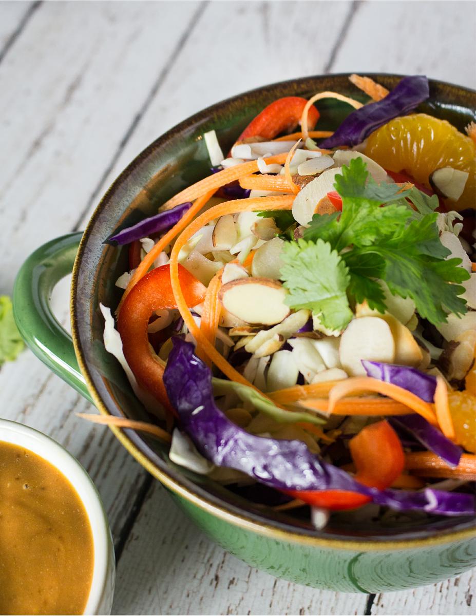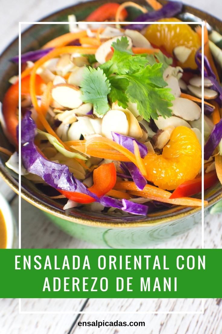 Receta de Ensalada Oriental con Aderezo de Maní, con o sin pollo.