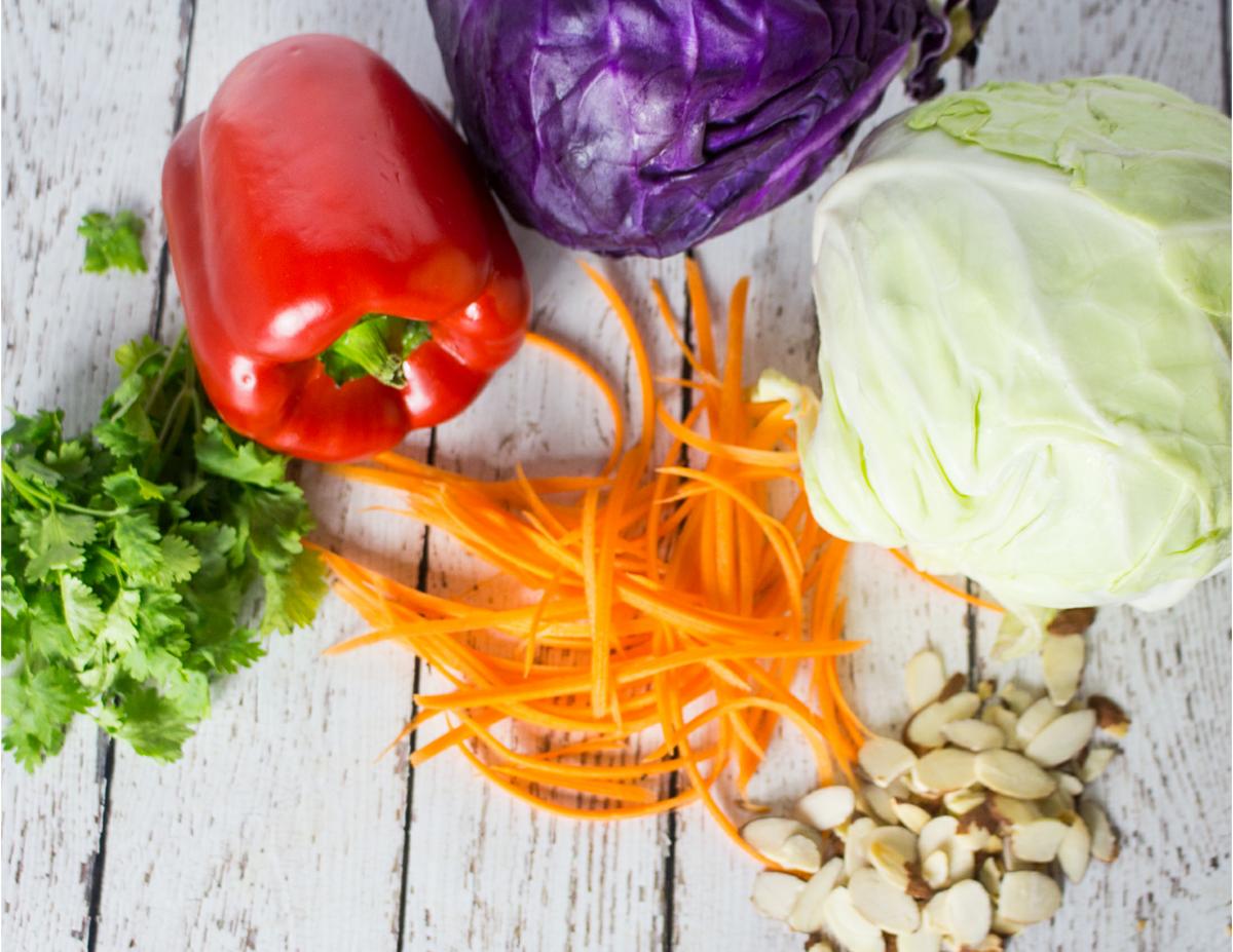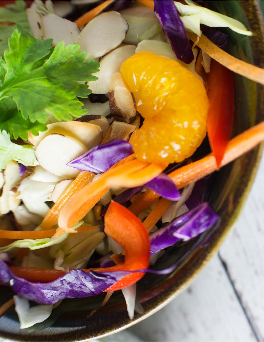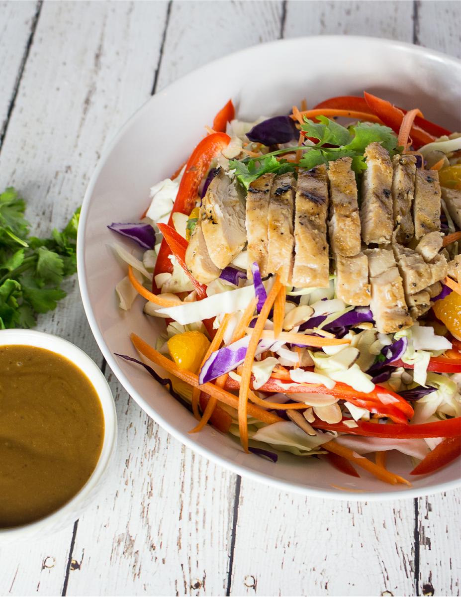 Receta de Ensalada Oriental con Aderezo de Maní, con o sin pollo.
