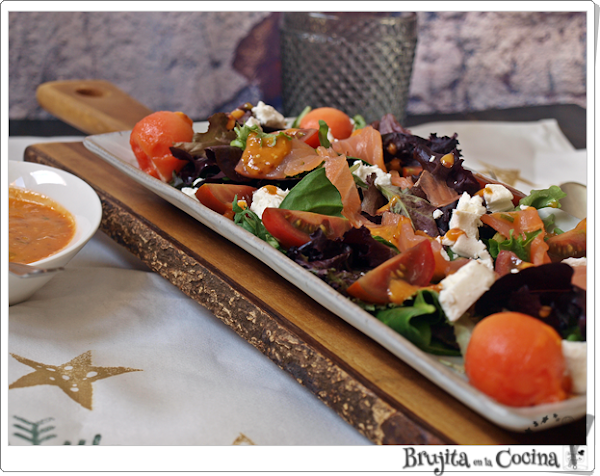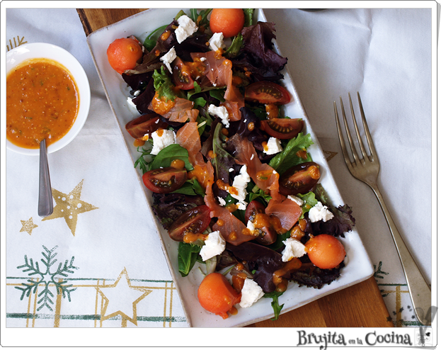 Hoy vamos a comer una ensaladita, que llevamos muchos días comiendo de más y la verdad es que me apetece mucho, es de aprovechamiento, sencilla pero muy rica, porque con lo que ha ido quedando en el frigo tras preparar la cena de nochevieja y la comida del año, de canapés y demás.