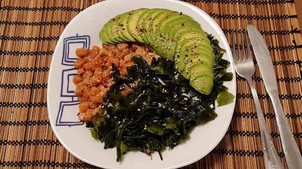 En la base de un bol o plato pondremos la mitad del arroz, sobre él en un lado, la mitad del salmón marinado, a su lado, la mitad de las algas wakame y, al lado de estas, la mitad de las láminas de aguacate. Una vez hecho, aliñaremos con el zumo de lima que nos quede, esparciremos parte de las semillas de sésamo, y si queréis darle un poco de vidilla, un poco de cayena bien picada, tal que así: