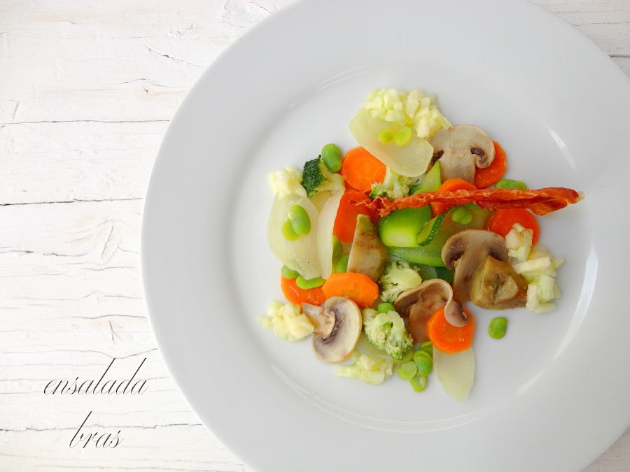 Cuando lo descubrimos en casa en un documental sobre su restaurante en Laguiole, nos quedamos tan fascinados que desde entonces hacemos una ensalada a la que bautizamos entre risas como "bras"...
