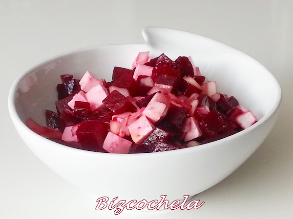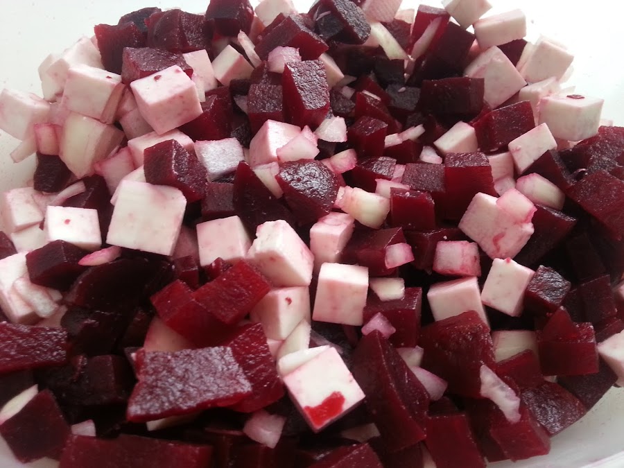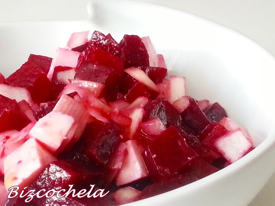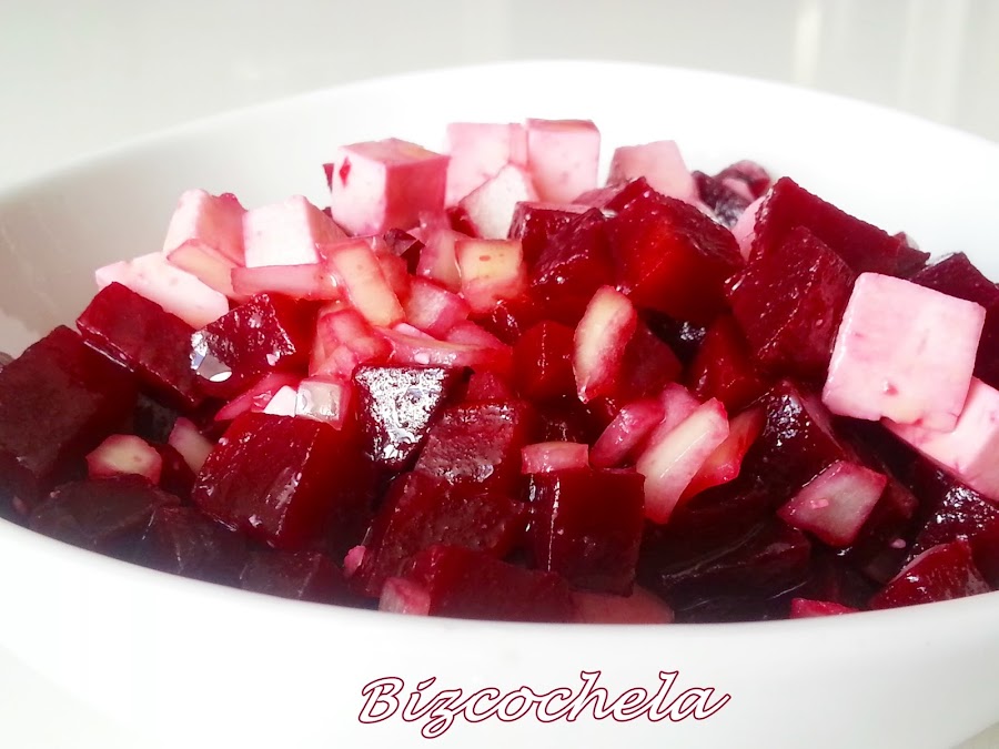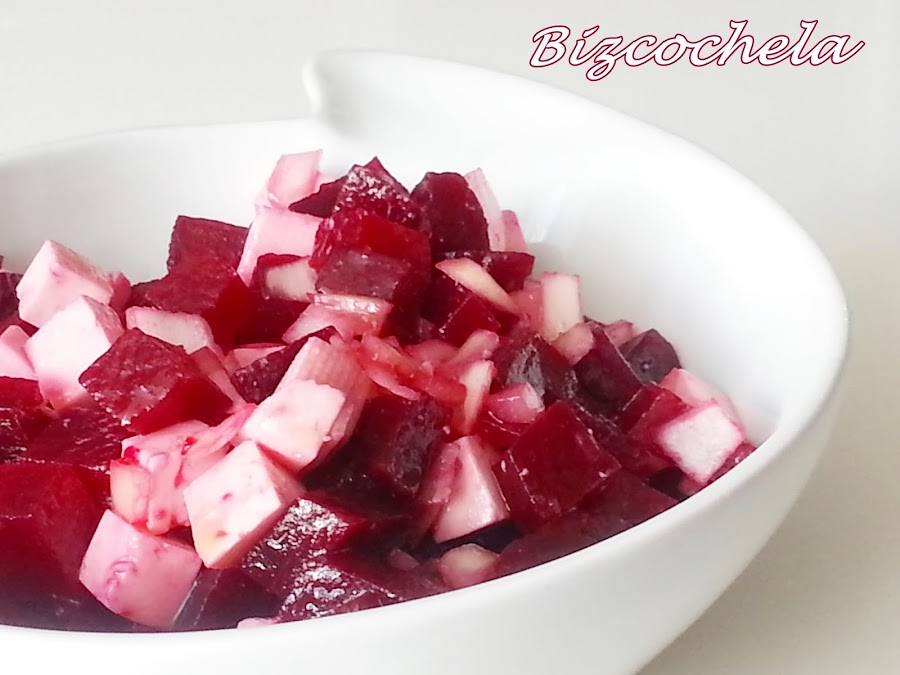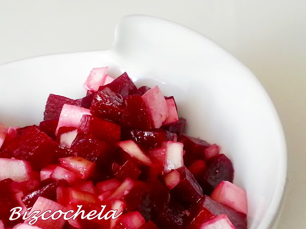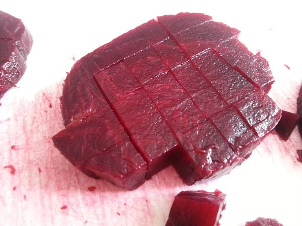 2. - Cortamos las remolachas en daditos, aunque también se puede poner en rodajas.