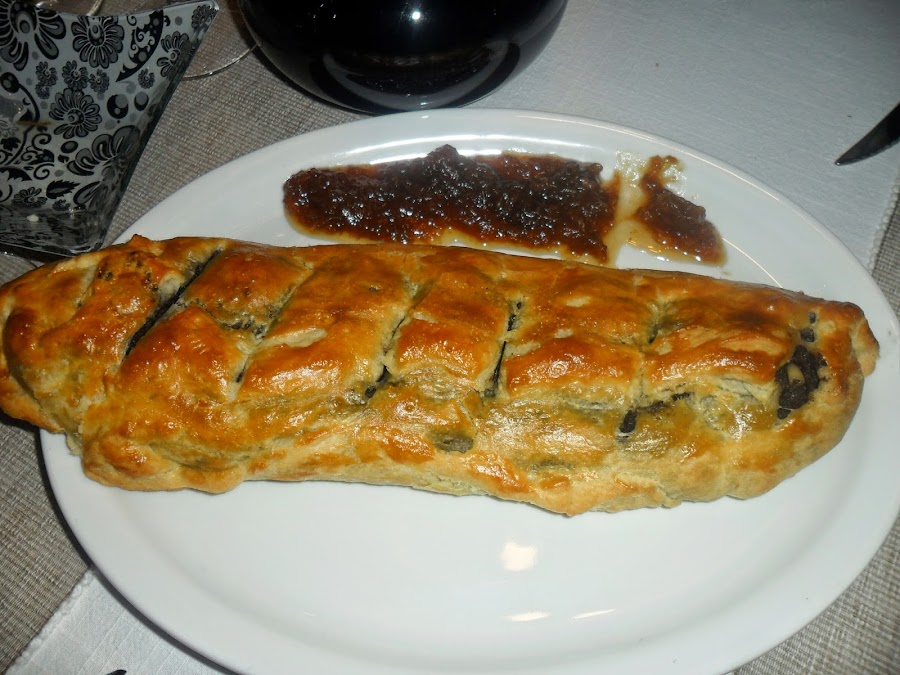 HOJALDRE RELLENO DE ESPINACAS, MORCILLA Y PIÑONES: