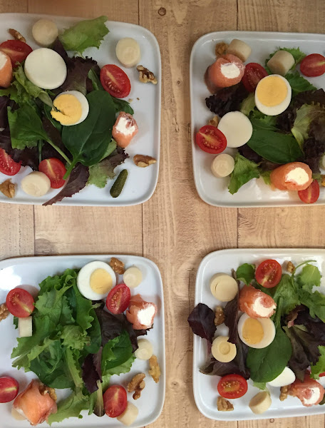 Ensalada con Rollitos de Salmón Rellenos de Queso
