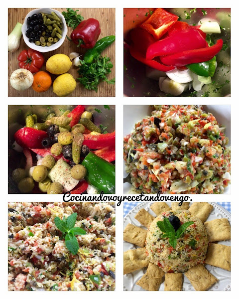 Picamos las aceitunas y los pepinillos (es opcional ya que también se pueden servir enteras)
